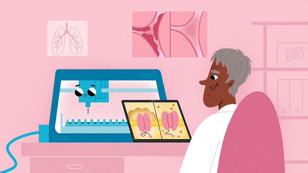Cystic fibrosis (CF) is a serious genetic disease that causes thick, sticky mucus to build up in the lungs and digestive system. For many years, treatments could only manage the symptoms. That began to change with the discovery that CF is caused by problems with a protein called CFTR, which normally helps keep mucus thin and slippery. When CFTR is missing or does not work properly, mucus becomes too thick, leading to serious health problems. After scientists discovered how CFTR works and what goes wrong in CF, another team began developing medicines that help the faulty protein fold correctly, reach the cell surface, and open to let chloride pass through. Today, powerful triple therapies that combine these drugs work for about 90% of people with CF. This work has changed what it means to live with the disease—and has shown how understanding the root of a problem can lead to real solutions.